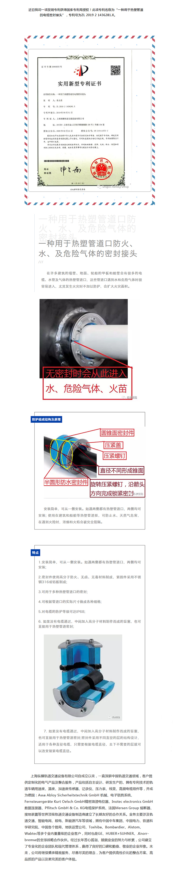 【喜 讯】热烈祝贺纵横轨道获得实用新型专利证书